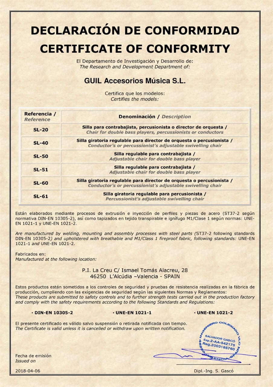 GUIL SL-20 эргономичный универсальный стул для стул для контрабасиста или дирижёра.